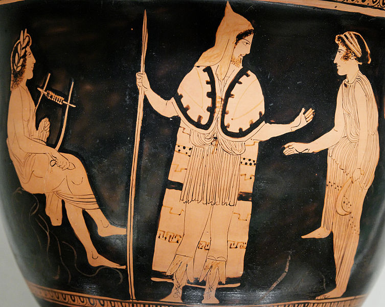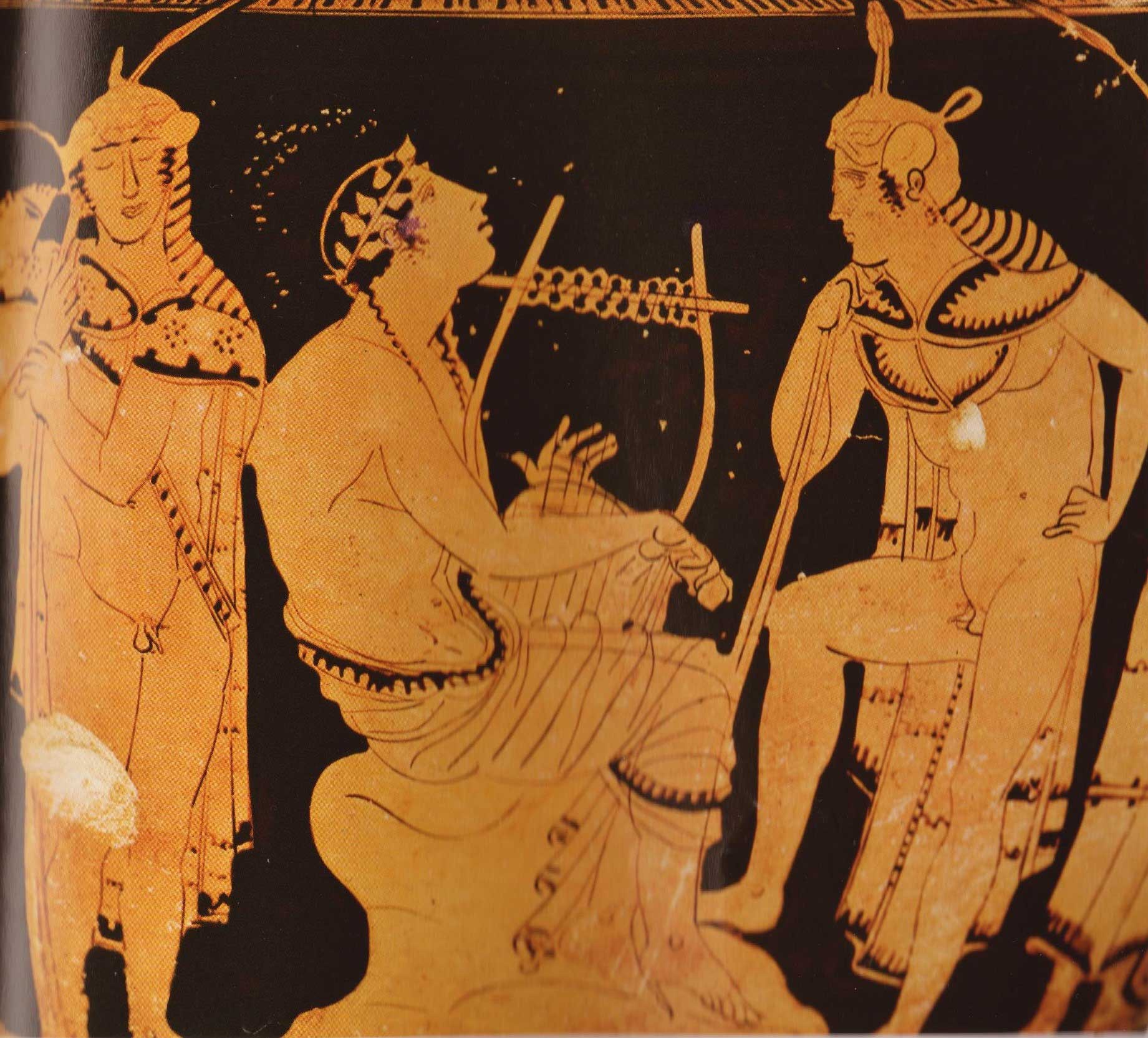 Ο Ορφεύς σε ερυθρόμορφες παραστάσεις αγγείων των μέσων του 5ου αι. π.Χ.: Kρατήρας στο Μητροπολιτικό Μουσείο της Νέας Υόρκης. Στις πρωϊμότερες παραστάσεις της αρχαιότητας ο Ορφεύς δεν απεικονίζεται ως Θραξ