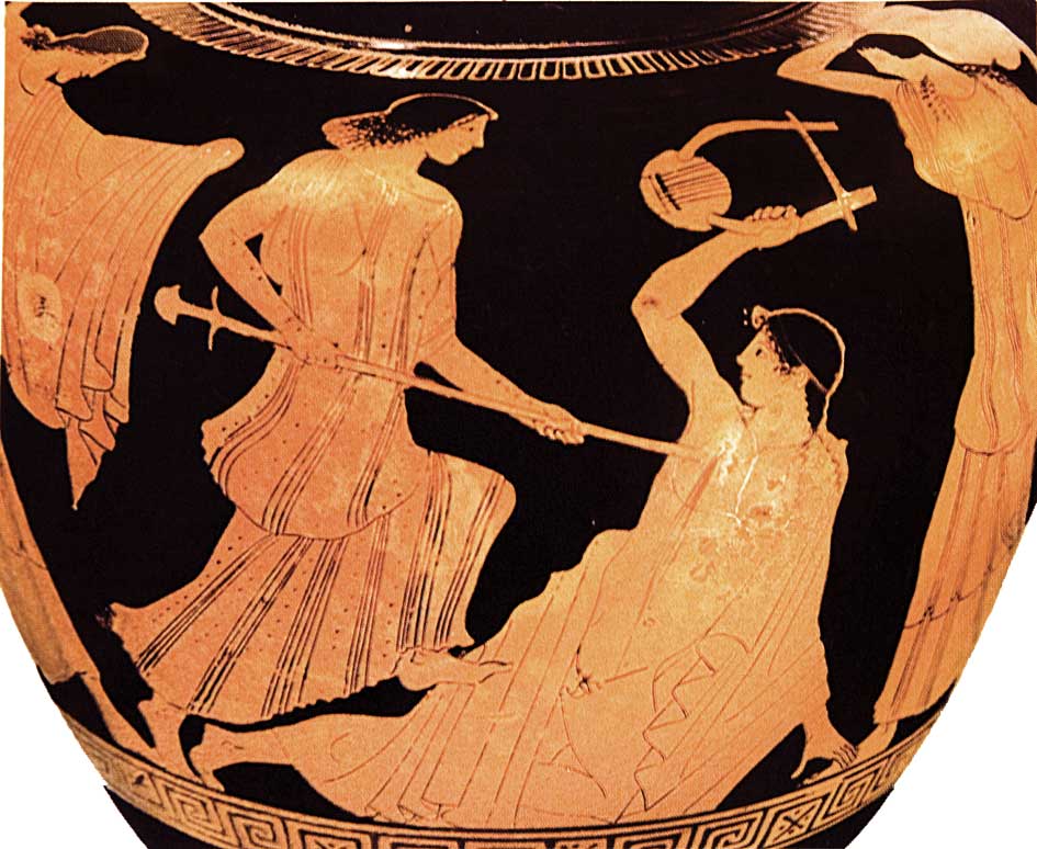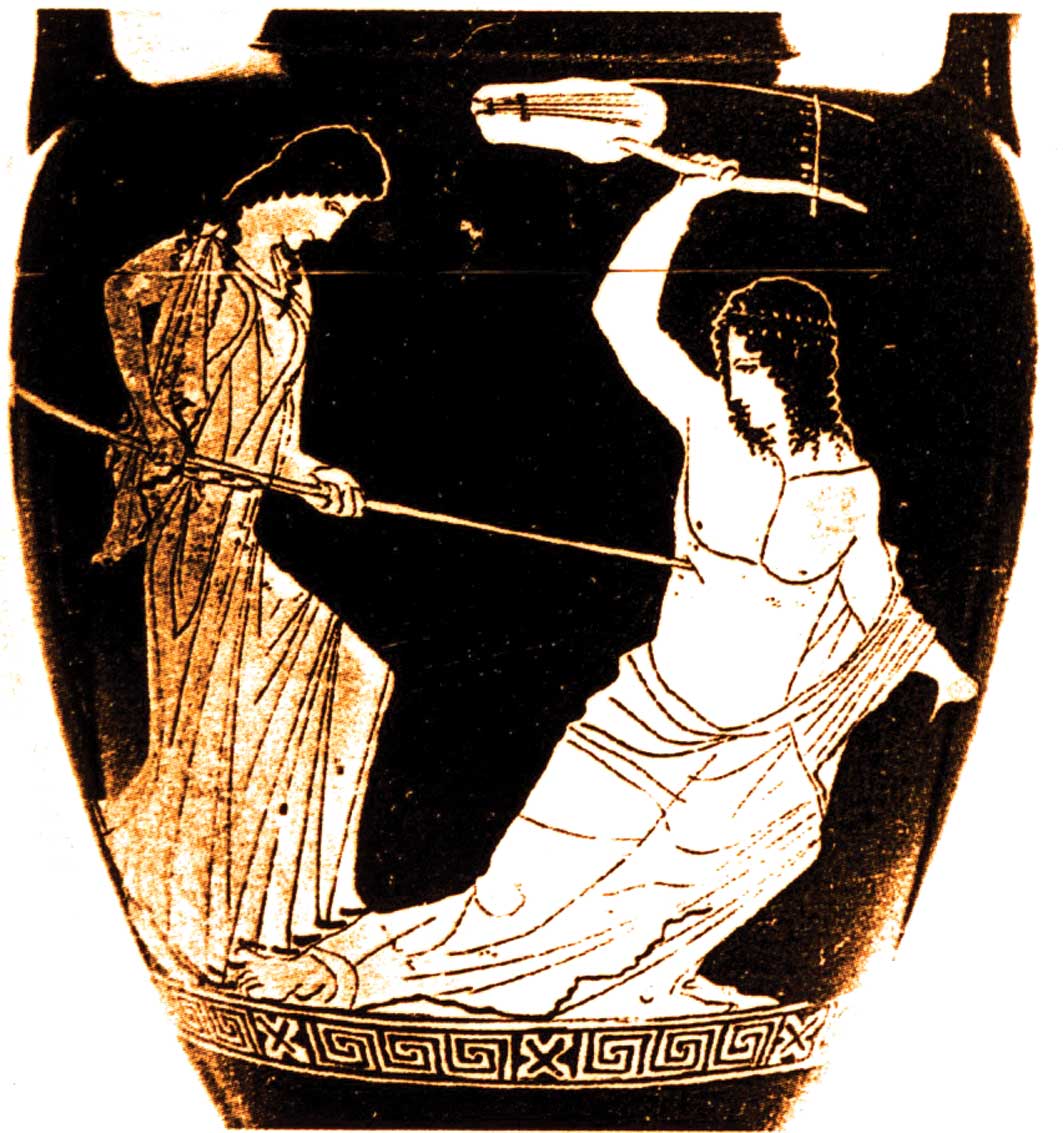 H δολοφονία του Ορφέα στον Όλυμπο από τις γυναίκες της Πιερίας σε ερυθρόμορφες παραστάσεις αγγείων του 5ου αι. π.Χ. : Αμφορέας Nola στο Bale